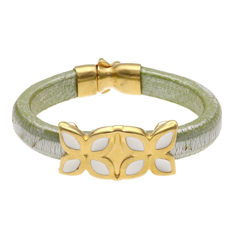 Piezas y Cierre de aleación con baño de Oro 24k de alta calidad y durabilidad. Detalle de flor esmaltado a fuego.
