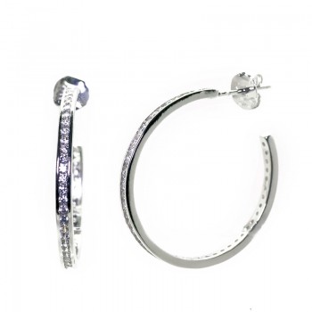 Pendientes de Plata de Ley 925 uno en forma de cruz y el otro de circulo con baño de Rodio para que la plata tenga ese brillo de oro blanco y evitar así que se oscurezca con facilidad, teniendo un brillo más duradero. También disponible en Plata 925 chapado oro 18k. Ambos con circonitas engarzadas en varios colores.